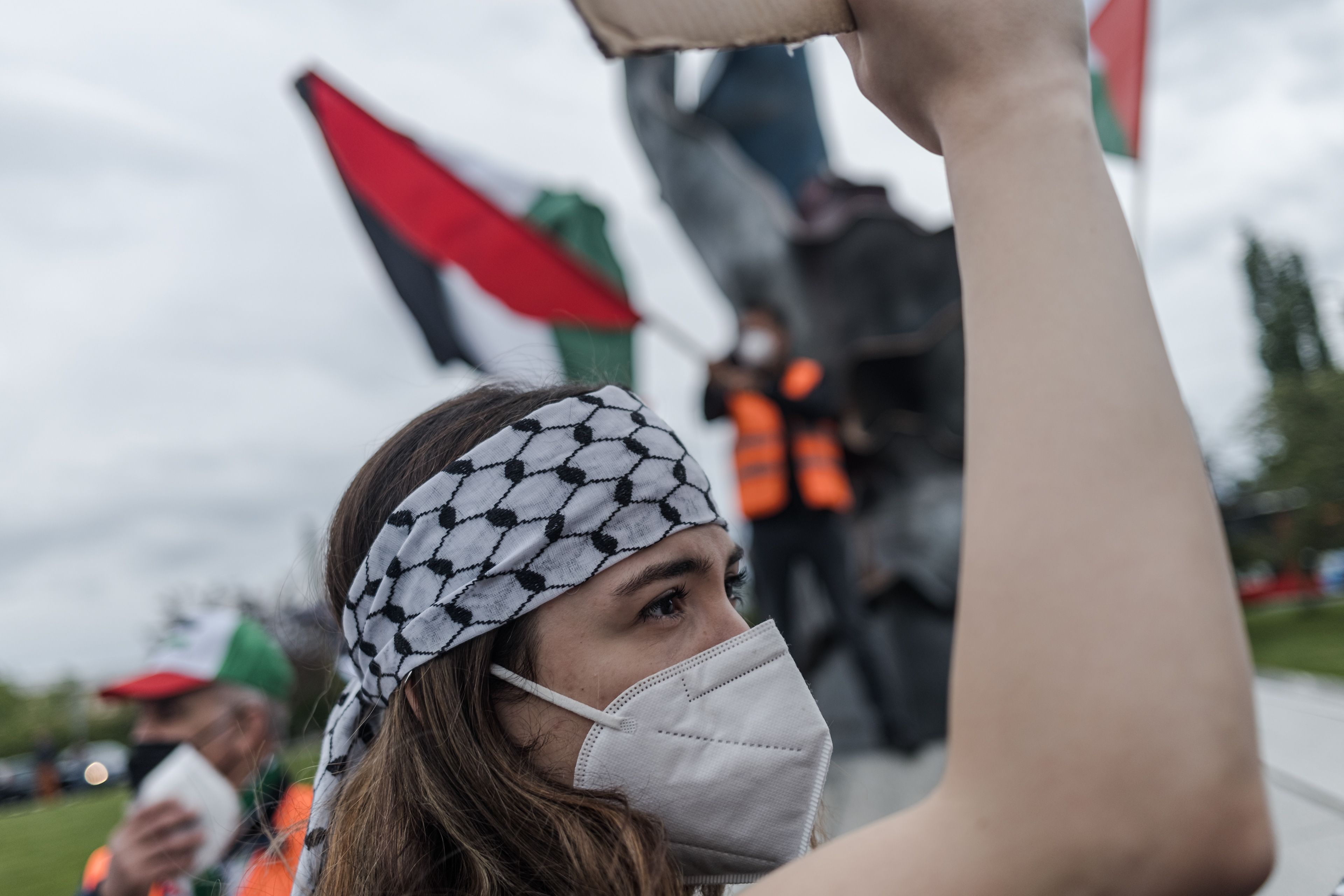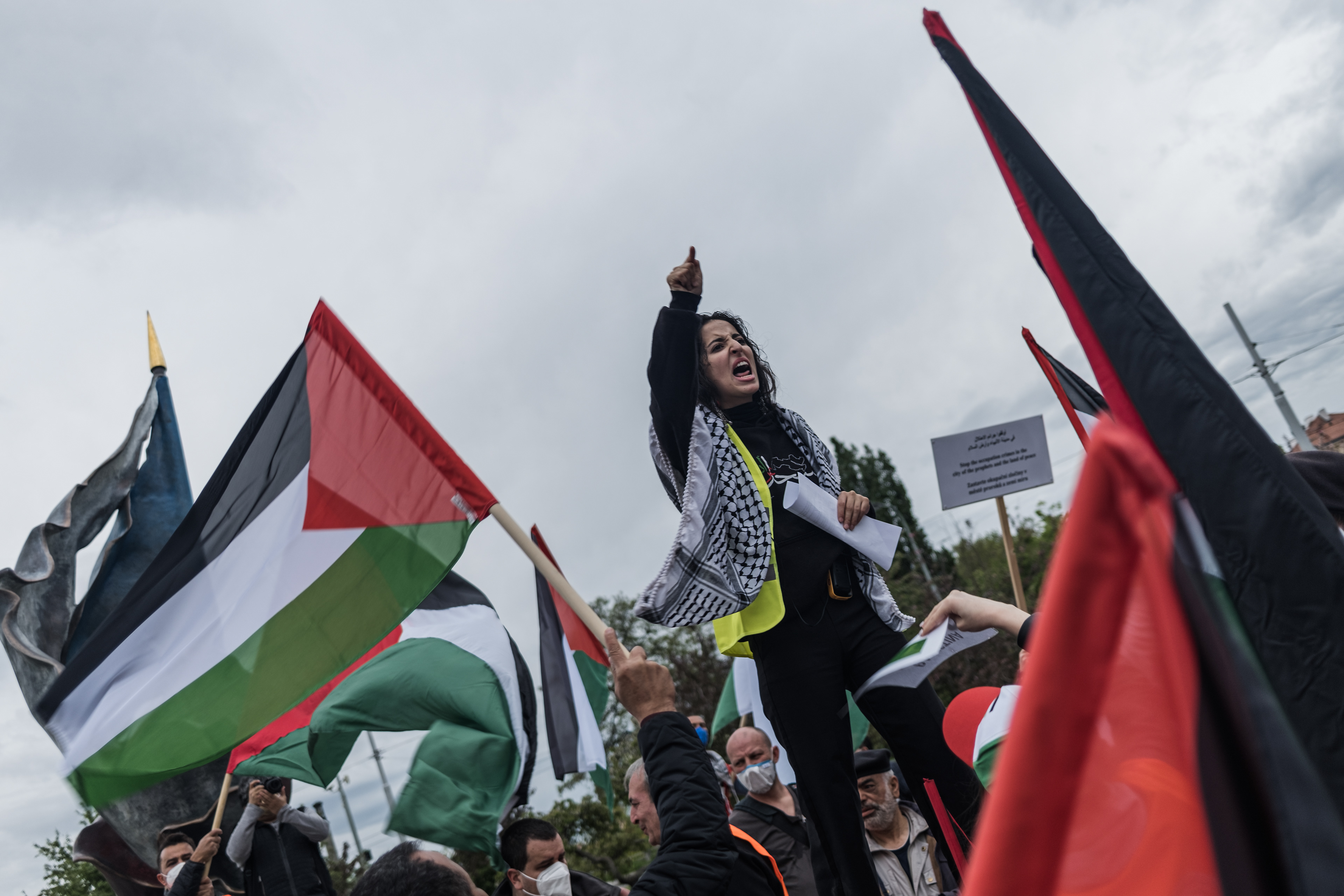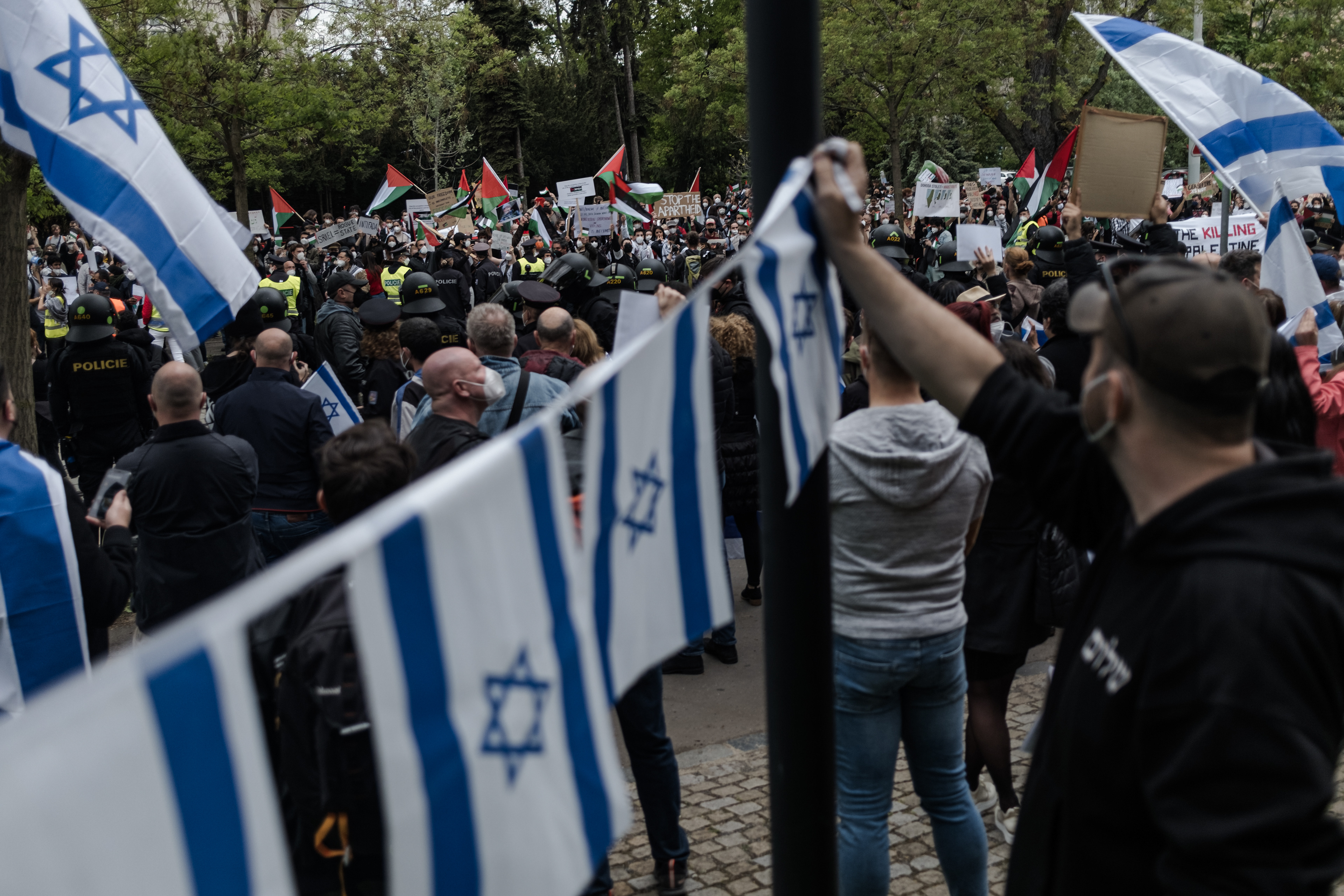 Lidé v Praze demonstrovali na podporu Palestinců i Izraele. 21.5.2021